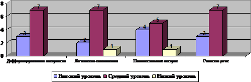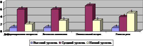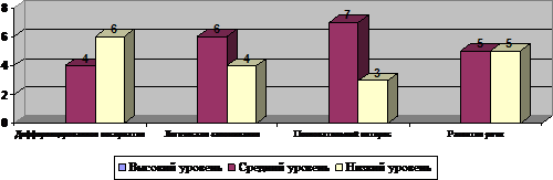 Дети, которые задание вообще не принимали, по данным нашего исследования, выявлено не было. В двух группах в основном имеют, как средний и низкий уровни.