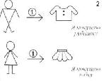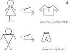 Игра «Ателье». Ее цель - активизировать словарь по теме «Одежда», учить правильно употреблять существительное в винительном падеже. Воспитатель рассказывает детям о том, что открывается ателье и можно сшить любую одежду. Дети выбирают картинки с изображением предметов одежды и при помощи символов составляют фразы (рис. 4).