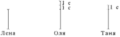 Задача 1. Лена, Оля, Таня участвовали в беге на 100 м. Лена прибежала на 2 с раньше Оли, Оля прибежала на 1 с позже Тани. Кто пришел раньше: Таня или