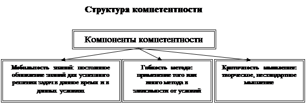 Рассматривая компетентность как готовность к выполнению деятельности, в качестве основных ее компонентов выделяем: мобильность знаний, критичность мышления, ответственность за действия (см. схему)