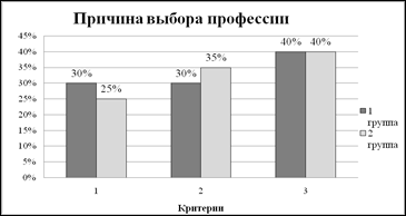 1. для 40% детей причина выбора профессии, прежде всего интерес к выбранной деятельности;