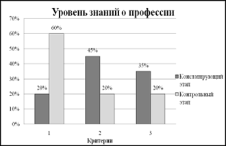 В результате, как показал контрольный этап эксперимента, уровень профессиональной ориентации старшеклассников, входивших в экспериментальную группу, повысился, при том, что в контрольной группе количественные показатели практически не изменились.