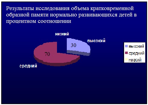 Выявлены общие и специфические показатели развития образной памяти детей с задержкой психического развития в сравнении с показателями, характерными для детей с нормальным интеллектуальным развитием.