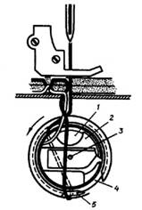 Качество сшитого изделия во многом зависит от качества строчки. Когда игла достигает своего крайнего нижнего положения, сзади иглы образуется петля, что позволяет захватывающему крючку пройти между ниткой и иглой, создавая тем самым обрамляющий стежок при помощи верхней и нижней нити.