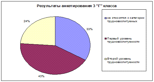 В ходе исследования нами были выявлены трудновоспитуемые дети в классе (67% учеников 3 «Г» класса). Также нами был изучен характер применяемых методов поощрения и наказания в воспитании детей и выяснено, что большинство родителей используют такой вид поощрения как похвала. В качестве метода наказания большая часть опрошенных родителей (38%) выделяют наказания, связанные с ограничением в правах детей. 38% родителей предпочитают выражать своё недовольство поступками и поведением детей в виде крика, ругани, а иногда прибегая к использованию выражений, унижающих достоинство ребёнка.