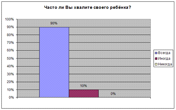 В ходе психолого-педагогического эксперимента было установлено, что при использовании родителями метода поощрения ребёнок стремиться повторить поступок, за который его похвалили. При использовании метода наказания дети в 100% случаев изменяют своё поведение.