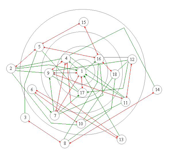 Метод социометрии относится к эффективным средствам изучения межличностных отношений. Эффективность социометрии во многом зависит от психологической подготовки опрашиваемых. Заполнение социометрической карточки (табл. 1 приложения) – дело добровольное, сугубо личное. Была изложена задача опроса, указана его важность. Результаты опроса полностью не сообщались опрашиваемым, т.к. могли привести к нежелательным инцидентам и конфликтам. Для анализа ответов на первый и второй вопросы были построены социологические матрицы, отражающие картину межличностных отношений и партнерства в группе (табл. 2 и 3 приложения). Партнерство определяется взаимностью выборов, которые закрашиваются серым цветом. Социограмма в графическом виде приведена на рис. 1 приложения.