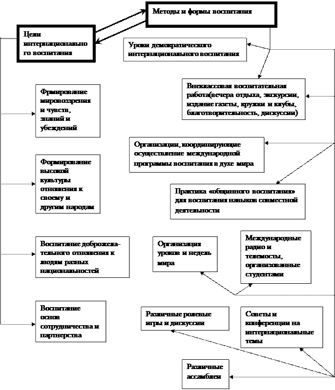 Интернациональное воспитание исходит из того, что образование и воспитание в полиэтнических сообществах не может быть иным, как при учете национальных (этнических) различий, и должно включать множество типов, моделей и ценностных педагогических ориентации, адекватных мировоззрению и запросам разных этнокультурных групп населения.