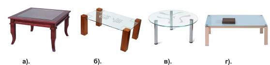б). Столик с стеклянной столешницей и деревянными ножками.