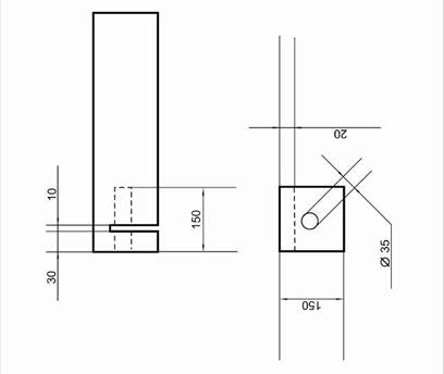 Нужно взять брус и высверлить отверстие в торцевой части, следуя заданным размерам. |