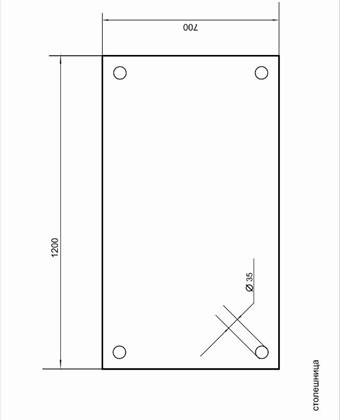 Производим шлифовку всей поверхности ножки и нагеля, далее покрываем эти детали мооилкой и снова шлифуем. Вырежем из стекла прямоугольник по заданным размерам, а потом в обозначенных местах пробурим круглые отверстия. Зашлифуем торцы столешницы. |