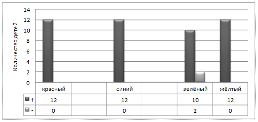 | № | Ф.И. ребенка | Возраст | Красный | Синий | Зеленый | Желтый |
