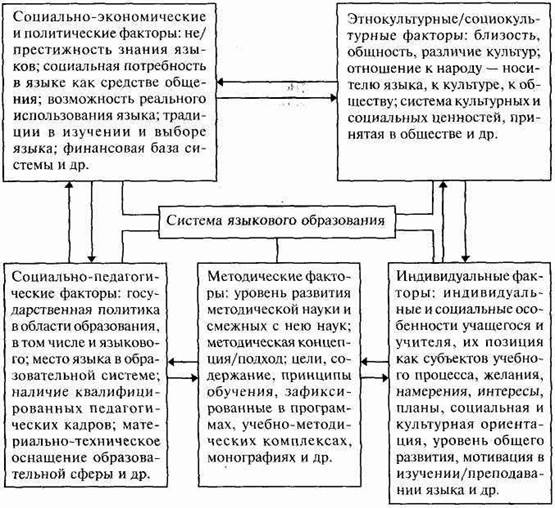 Действительно, на современном этапе развития страны — этапе, отличающемся глубокими интеграционными процессами во всех сферах общественной жизни, языковое образование выступает в качестве значимого медиума, оно формирует (должно формировать) сознание личности, ее способность быть социально мобильной[5] в обществе, свободно «входить» в открытое информационное пространство. Даже при благоприятных условиях государственно-общественная значимость языкового образования должна подкрепляться его личностно ориентированной ценностью. Последняя связана с индивидуально мотивированным и стимулированным отношением отдельной личности к собственному образованию вообще и языковому образованию в частности, к его уровню и качеству (см.: Нечаев Н.Н., 1989).