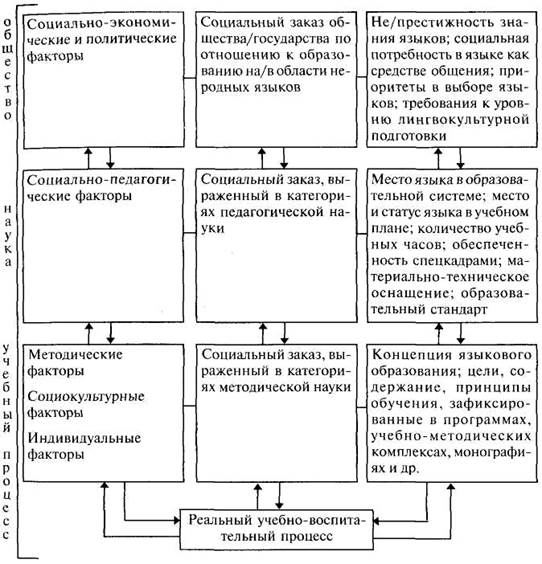 В свою очередь, на государственно-общественном уровне престиж языкового образования зависит от степени и глубины меж культурной интеграции в конкретных геополитических регионах, диапазона политикоэкономических и культурных (в том числе и этнокультурных) потребностей в международной кооперации и межнациональном сотрудничестве. Создание таких условий в обществе позволит установить пути разумного удовлетворения общественно-государственных и личностных потребностей и интересов в изучении современных неродных языков и сформулировать социальный заказ, т.е. требования государства и общества к лингвокультурной подготовке учащихся.