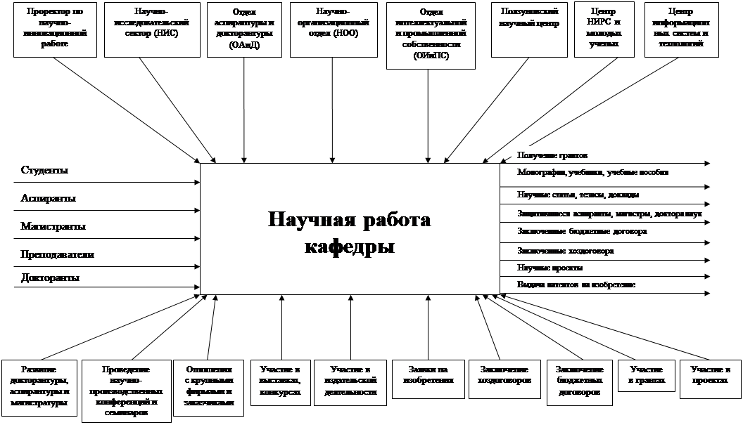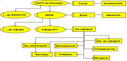 Кафедра - основное учебно-научное подразделение факультета и университета. Учебная и научная деятельность кафедры осуществляется в одной или нескольких областях знаний и подчиняется решению главной задачи - подготовке высококвалифицированных специалистов широкого университетского уровня. Вся деятельность университета и его подразделений строится таким образом, чтобы обеспечить возможности для эффективной работы кафедры [27]. Кафедра может иметь учебные и научные лаборатории, филиалы, кабинеты, учебные базы и другие подразделения. Внутренняя организация кафедры и формы руководства ее подразделениями определяются кафедрой, и утверждается на Ученом Совете факультета.