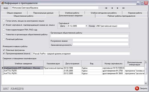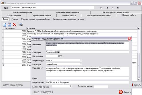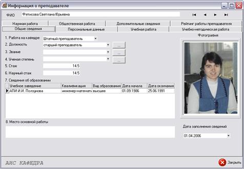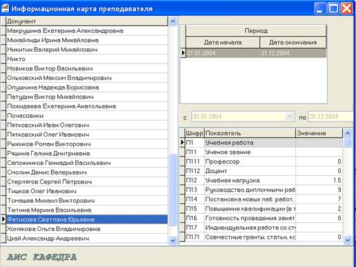 Дипломная работа: Автоматизированная система оценки качества деятельности преподавателей кафедры Информационные системы