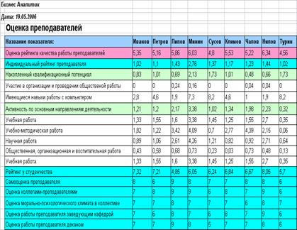 - экспериментально оценить рейтинг преподавателей с помощью информационно-аналитической системы.
