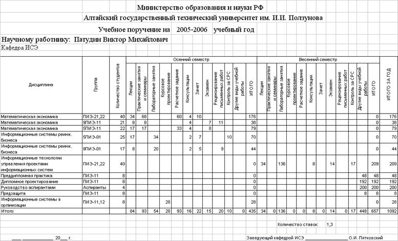 Объект дипломного проектирования – автоматизация деятельности преподавателей кафедры «Информационные системы в экономике».