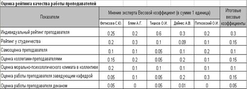 1.3.3 Обзор методик рейтинговой системы оценки качества работы преподавателей
