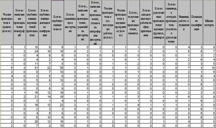 Приложение Л Обучающие выборки для задачи оценки деятельности преподавателей