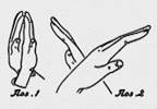 Ладонь правой руки при ходьбе касается левого колена, ладонь левой руки – правого.
