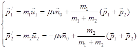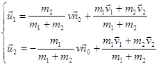 - приведенная масса образовавшихся частиц. Скорости частиц после распада в Ц-системе:
