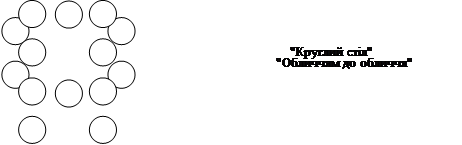 2. "Круглий стіл". Він дозволяє "об'єднати" суб’єктів навчання і тим самим уникнути виникнення підгруп. Таке розташування полегшує комунікацію між учасниками і деякою мірою нейтралізує роль вчителя.