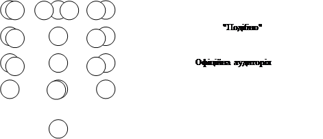 3. "Обличчям до обличчя". Учасники протистоять один одному в дискусії, відстоюючи протилежні погляди. Така структура мало допомагає комунікації, закликаючи сторони швидше до конфронтації, ніж до обміну думками.