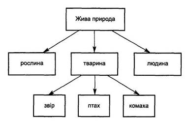 1. Узагальнення понять, що являє собою перехід від понять з меншим обсягом, але більшим змістом, до понять з більшим обсягом і меншим змістом. Воно здійснюється на основі встановлення родо-видових зв’язків.