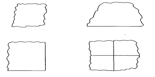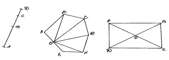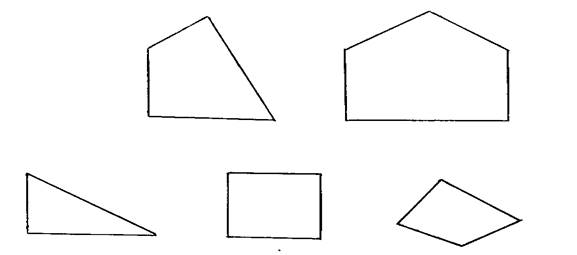 Виділяючи елементи многокутників, учні встановлюють, що сторони многокутників - відрізки. Вправи на виділення відрізків треба ускладнювати поступово, щоб вони були посильні учням. Так, щоб діти змогли побачити і показати всі відрізки, треба навчити їх виконувати легші завдання, називати і показувати відрізки на рисунках (рис. 3).