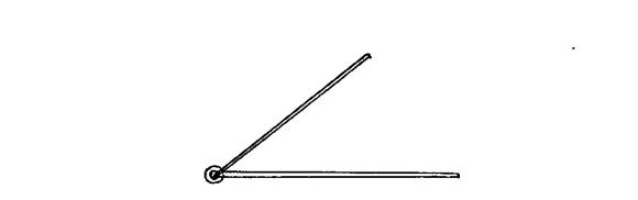 Щоб у дітей сформувалося уявлення про кут разом з його внутрішньою областю, на перших порах використовують паперові моделі кутів. Але потім одночасно з паперовими моделями використовують модель „розсувного” кута (малку). Раджу, щоб кожний учень виготовив таку модель кута з двох паличок, скріплених кусочком пластиліну або гвіздком (рис. 4).