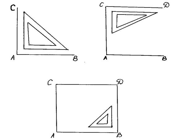 У І-ІІ класах учні будують прямокутники за допомогою лінійки (креслять прямі кути, користуючись клітинками в зошиті), а в IIIкласі під час побудови прямокутника використовують лінійку і косинець (рис. 5).