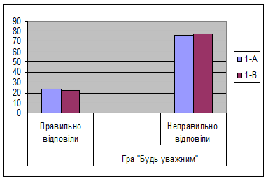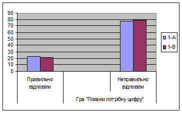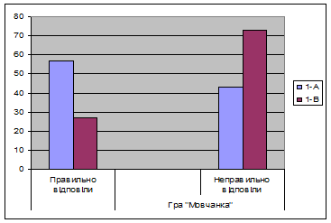 Отже, із таблиць та діаграм видно, що більші зрушення у правильності відповідей учнів в усних обчисленнях протягом навчального року відбулися в 1‑А класі. Ми пояснюємо це тим, що учні 1‑А класу навчалися за нашою експериментальною системою (порівняно з 1‑В класом, де навчання проходило у звичайній формі).