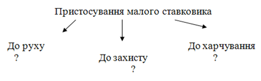 2.Біологічна задача: опишіть пристосування малого ставковика до існування, до доповнивши схему.