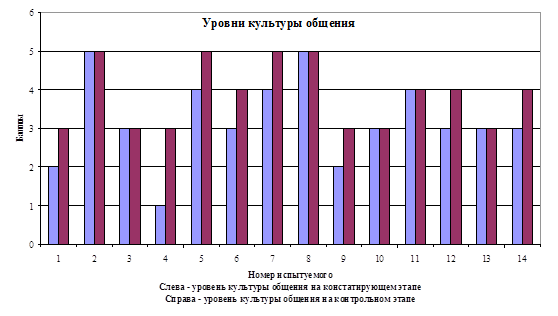 | Уровни культуры общения | Констатирующий этап | Контрольный этап | ||