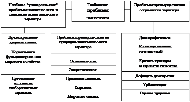 2. Они связаны с проблемами оптимизации, гармонизации и гуманизации отношений общества к природе. К ним относятся: экологическая проблема во всех своих проявлениях, демографическая, энергетическая, продовольственная проблемы, проблема использования космоса и т.д.