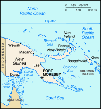 Государство в Океании, занимает восточную часть острова Новая Гвинея и близлежащие острова: архипелаг Бисмарка, северную часть Соломоновых островов (острова Бугенвиль, Бука), острова Д'Антркасто и более 200 других мелких островов. Северо-восточная часть страны находится в зоне сейсмической активности, имеется 18 действующих вулканов, нередки землетрясения.