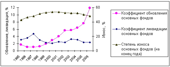 Для упрощения процедуры отбора инвестиционных проектов малого предпринимательства в 2003 г. администрациям муниципальных районов и городских округов предоставлено право на местном уровне осуществлять отбор проектов на условиях субсидирования части банковской процентной ставки за счет средств краевого бюджета. В ноябре 2001 г. Администрацией края приняты организационные меры по формированию и использованию краевого лизингового фонда. В течение 2002-2007 гг. за счет средств фонда приобретена 1141 единица сельскохозяйственной техники (в том числе 121 комбайн, 329 тракторов). Начиная с 2002 г. снижается степень износа основных сельскохозяйственных фондов, в 2006 г. она достигла уровня 1997 г. (рис. 3).
