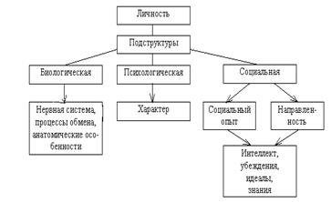 Социальное неравенство общества оказывает существенное влияние на возможности представительства интересов различных слоев и классов во власти, в политике. Одни социальные группы, слои оказываются пассивным объектом политики, другие являются не только объектом, но и субъектом ее. Это относится в полной мере и к отдельной личности как объекту и субъекту политики. Основными элементами структуры личности можно считать подструктуры: биологическую, психологическую и социальную (рис. 1).