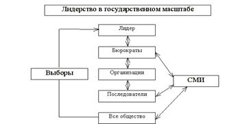 Различают индивидуальное лидерство и коллективное (элита и массы). Индивидуальное политическое лидерство в национальном масштабе представляет собой: