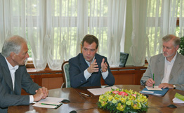 12 июля Дмитрий Медведев провел первую в должности президента встречу с лидерами четырех парламентских партий - "Единой России", ЛДПР, КПРФ и "Справедливой России".
