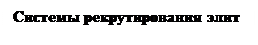 Большое влияние на социальную представительность, качественный состав, профессиональную компетентность и результативность элиты в целом оказывают системы ее рекрутирования (отбора). Такие системы определяют: кто, как и из кого осуществляет отбор, каковы его порядок и критерии, круг селектората (лиц, осуществляющих отбор) и побудительные мотивы его действий.