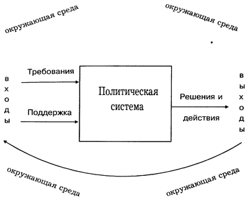 Если "исходящие" импульсы соответствуют ожиданиям населения, то общественная поддержка политической системы усиливается. "Вход" и "выход" составляют непрерывный цикл, который называют "петлей обратной связи".