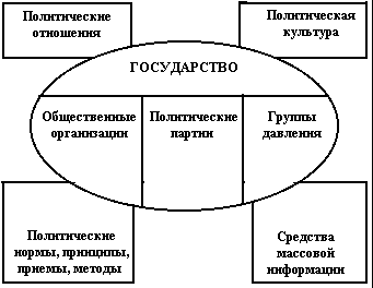 Скрепляющим, цементирующим фактором всех структурных элементов политической системы выступают политические отношения . Будучи вторичными по отношению к экономике, они играют весьма существенную роль в обеспечении функционирования всех сфер жизнедеятельности общества. Особая роль политических отношений состоит в том, что они выражают отношения по поводу публичной власти, как правило, больших групп людей (наций, классов, социальных групп). Они имеют разную социальную направленность. Один вектор этих отношений направлен на упрочение и развитие существующих политических институтов – другой может выступать как деструктивный фактор данной политической системы и выражать политические интересы оппозиционно-умеренных или революционных сил, имеющих цель ее разрушить. Политические отношения сотрудничества, учета баланса интересов, изоляции, нейтрализации, борьбы и т.д. и представляют собой ту общественную форму взаимодействия между нациями, классами, при помощи которой они и примыкающие к ним социальные группы и слои включаются в политическую деятельность, в решение насущных задач.