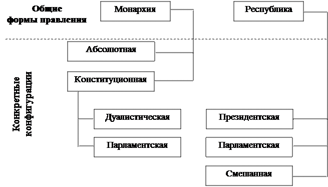 Теоретическая наука выделяет и исследует общие закономерности возникновения и развития различных форм правления. Она апеллирует к их повторяющимся, наиболее типичным свойствам и характеристикам. Реальная же жизнь более сложна и многообразна и неоднозначна.