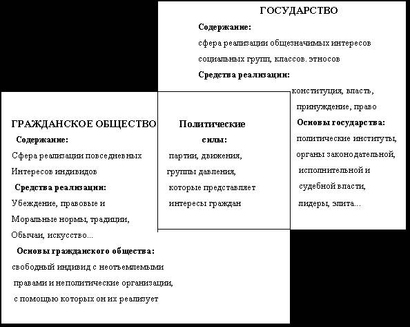 Поэтому в течение длительного времени неизбежен переходный период тесного, часто противоречивого взаимодействия и взаимовлияния демократически сформированных органов правового государства и институтов гражданского общества. Постепенно по мере повышения культурного уровня, приобретения управленческих навыков, компетенции в суждении о важнейших общественно-государственных проблемах, граждане через институты гражданского общества будут брать на себя все больше функций государственной власти, и переходить к самоуправлению. Пока же в ходе политической реформы члены общества должны иметь гарантированную законом и обеспеченную всем механизмом реформируемой государственной структуры возможность свободно выражать свою политическую волю и повышать уровень своей гражданской культуры.