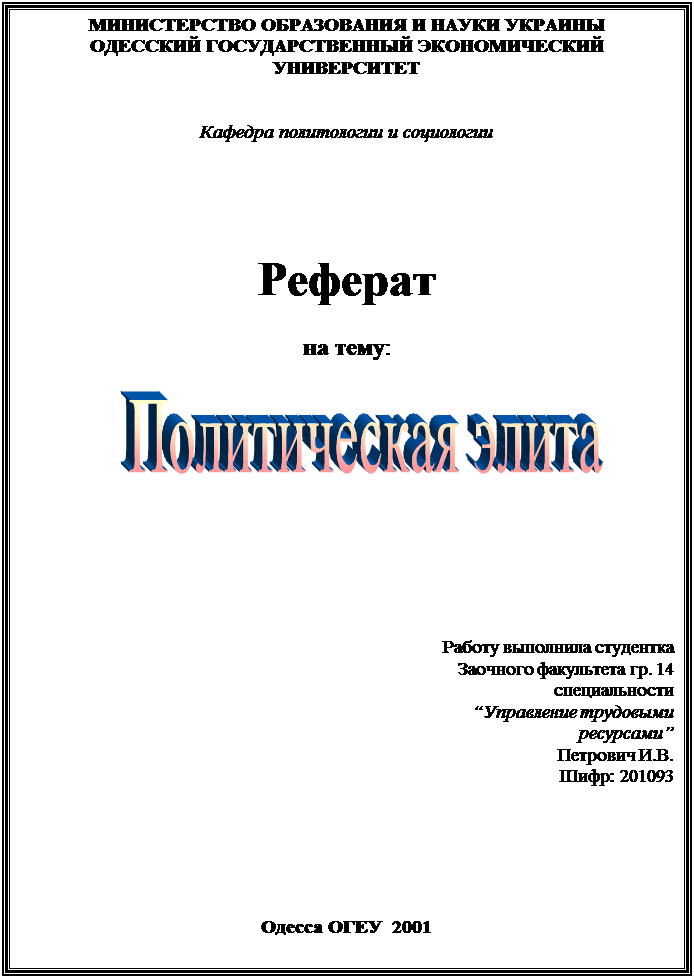 1. ПОНЯТИЕ «ПОЛИТИЧЕСКАЯ ЭЛИТА»