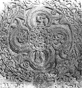 Выше: Свастику можно увидеть на резьбе по кости, получившей название “айагапта”, в Матуре, Индия. Эта эмблема – одно из оставшихся свидетельств о племени северных индоевропейцев, называвших себя ариями, которое вторглось в Индию. Со временем арии были поглощены окружающими не-белыми массами, создавая кастовую систему, присутствующую в этой стране и в наши дни.