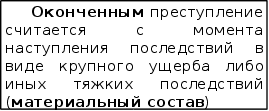 Состав преступления- материальный. Оконченным оно будет с момента причинения вреда правам и законным интересам гражданина. Действие (бездействие) субъекта преступления и наступивший вред должны находиться в причинной связи. Вред может быть и материальным- как реальным, так и в форме упущенной выгоды (например, незаконное увольнение с работы по мотивам принадлежности к общественному объединению ЛДПР лишает потерпевшего заработной платы или не позволяет рассчитывать на дополнительный заработок, получаемый по данному месту работы), и моральным (достоинство человека, его чувство уверенности в своем будущем ущемляются незаконными действиями субъекта преступления).