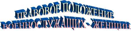 Таково правовое положение военнослужащих - женщин, предусмотренное законодательством Российской Федерации. Но в реальности эти законы знают не все женщины- военнослужащие порой даже командиры не имеют представления об этих правилах и льготах. Нередко это приводит и к определенным недоразумениям, к конфликтам.